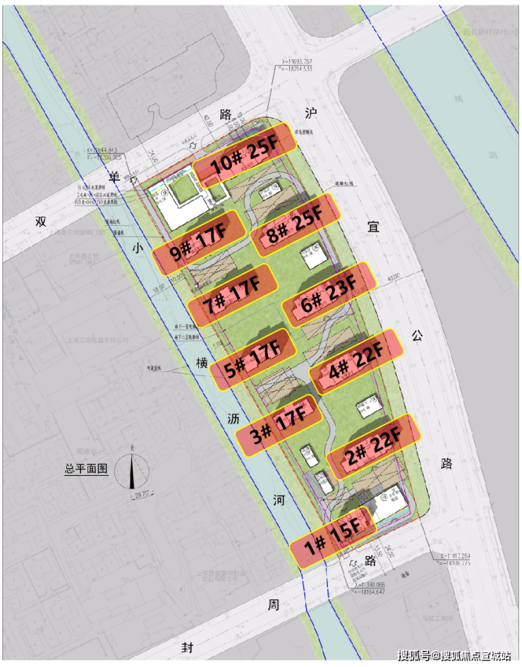 根据设计方案显示,项目拟建10幢15-25F的商品住宅和1幢公共配套,其中,17层住宅楼4栋,22层住宅楼2栋,23层住宅楼1栋,25层住宅楼2栋,15层住宅带裙房(公共配套)1栋,1层公共配套1栋。