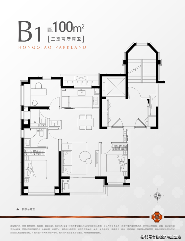 130㎡四房:270°跑道阳台,四叶草格局