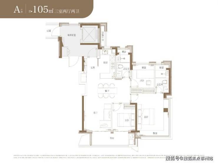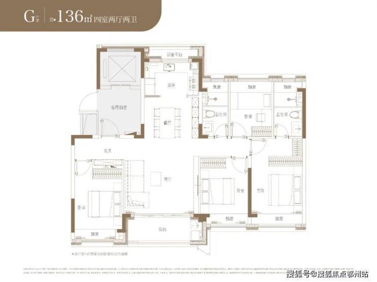 户型为建面约92-105-128-136-143㎡3-4房。