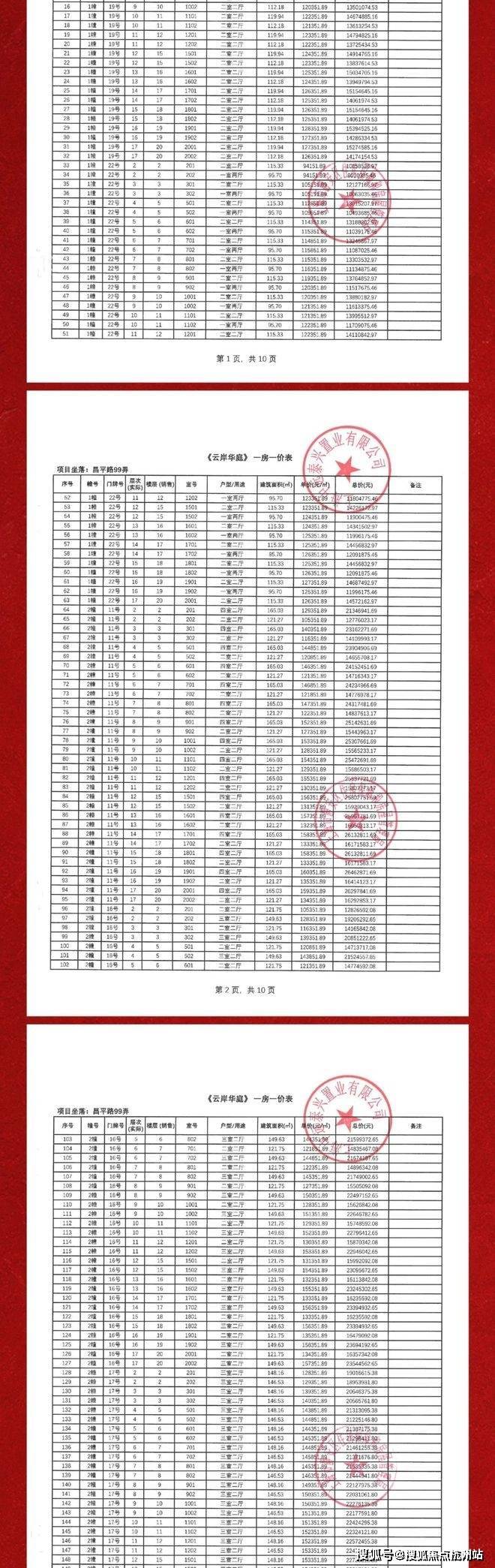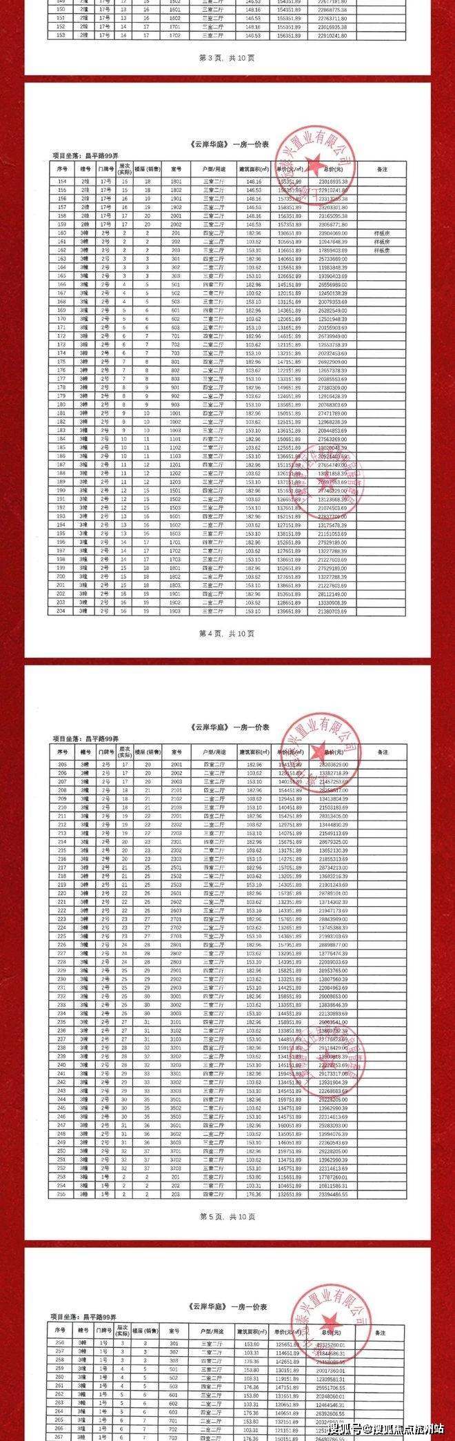 一房一价表如下