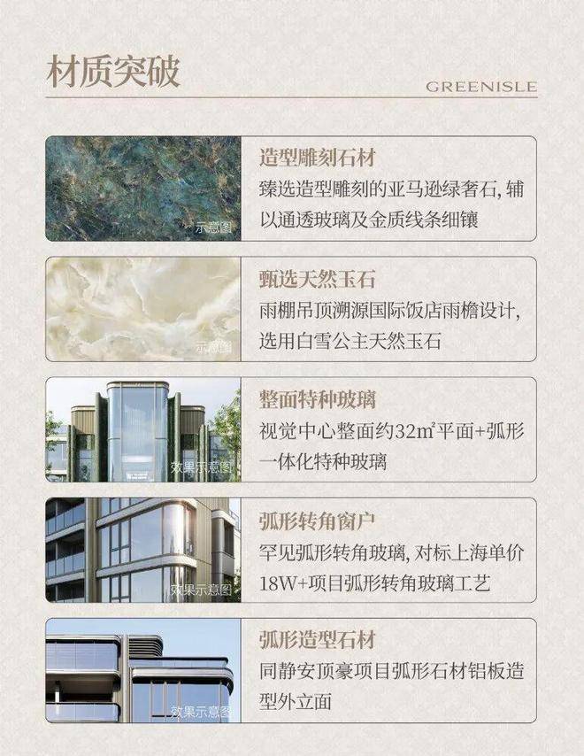 造型雕刻石材:臻选造型雕刻的亚马逊绿奢石,辅以通透玻璃及金质线条细镶