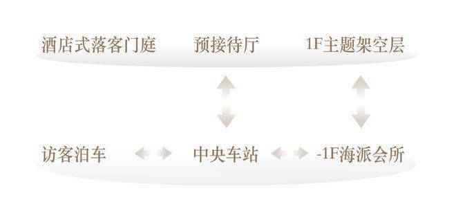 精装车库打破传统车行通道的单调感,并以「中央车站」概念打造枢纽式空间,连通会所与庭院,实现高效通行与私密守护的平衡。地下车库不仅精装交付,还首次提出“中央车站”概念。