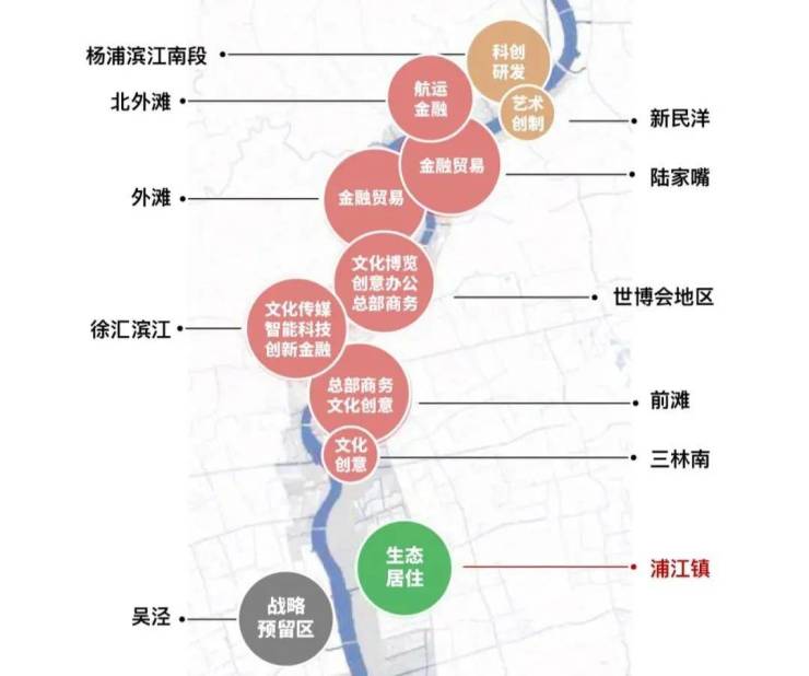 在2035规划中将浦江镇定义为闵行中心城区,打造“一廊三带三心”空间布局,依托得天独厚的生态资源及完善配套定义为“生态宜居板块”以及生态创新研发服务中心。