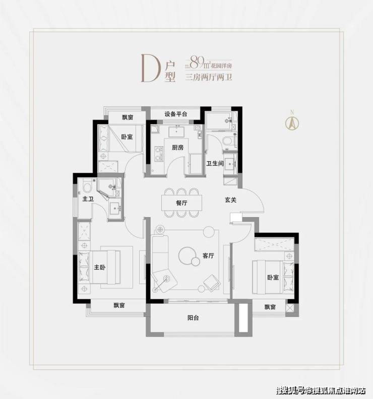 洋房建面约89㎡3房2厅2卫