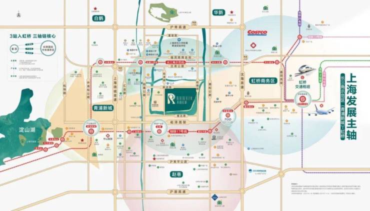 轨交17号线:项目距赵巷地铁站约2.3km,6站直达大虹桥交通枢纽