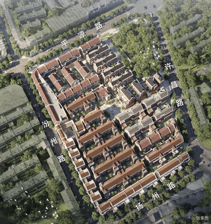 项目坐落于 杨浦区汾州路 60 弄 ,北至平凉路、东至许昌路、南至扬州路、西至汾州路,总占地面积约 1.7 万方,总建筑面积约 3.24 万方, 容积率仅 1.4 (内环内低于 1.5 的住宅用地已绝迹), 绿化率高达 38%-42% 。规划 28 栋 3-5 层联排、合院别墅,仅 90 席纯低密房源, 车位配比 1:1.2 ,全人车分流设计,社区内部静谧有序、圈层纯粹,每一户都享有不被打扰的私密尊崇。