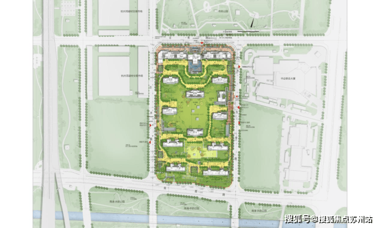 项目北侧直面约4万㎡市民公园,借鉴纽约中央公园“公园即城市客厅”的规划理念,将社区景观与公共绿轴无界融合,实现“下楼即公园”;南接水韵公园,依托自然水系,形成蜿蜒1.2公里的滨水景观带。双公园联动,构建出约32万平方米的生态绿肺,这样的城芯稀缺生态,不仅为生活提供绿意,更是为资产的溢价助力。