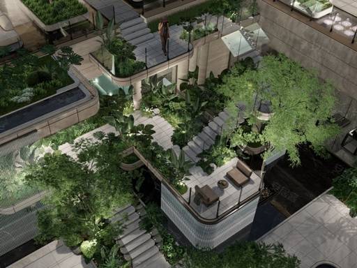 下沉式庭院、中央景观花园、全龄活动区