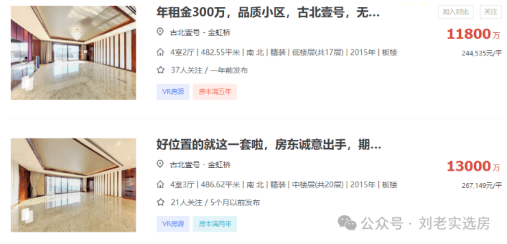 而南向公园的高端豪宅溢价率,上海目前的例子只有一盘:古北壹号。