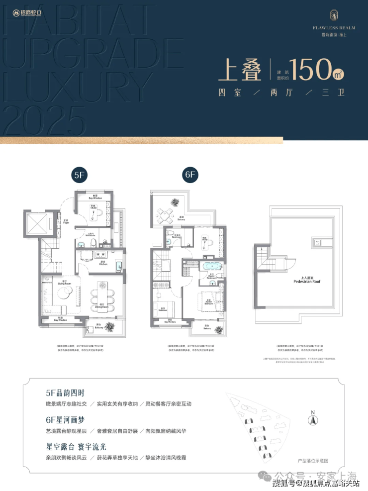 本宣传资料所涉及的户型仅供示意参考。仅为横拟本户型装修效果叠加装修设想进行展示、所示室内装修、家具、陈设、灯具、门窗等除注明外均不在交房范围之中;相同户型因楼栋楼展、单元等差别,局部结构、面积、功能布局、空间分制、门窗/管井形态位置等可能有不同,并且强弱电箱、插座位置等均未在户型围中体现,具体以政府部门及终审定的图纸和《商品房买卖合同》为准,本广告制作日期为2025年11月10日,有效期至2025年12月10日。开发商:上海招宜置业有限公司,推广名:招商臻境。