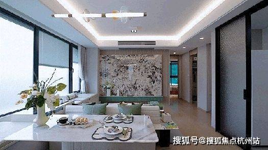 端户约5.6米大尺度瞰景客厅,坐拥180°广角观景体验,引地块水系公园与社区内景入室,恰如身处人与自然的“观礼台”。