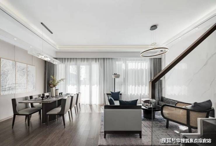 约135㎡观景下叠采用大面积玻璃连通客厅与庭院,同时通过阳台与阔尺窗户,真正做到引景入室。