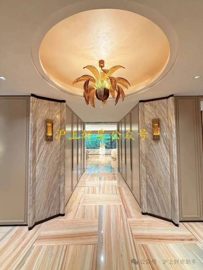 经典十字序列厅:从私享电梯厅开始,经由对开入户门,首先就进入这样一个十字序列厅,视线远处,就是尽头观景台,这条长廊,可以是公私分区的交通枢纽,也可以是彰显主人品味的艺术长廊;