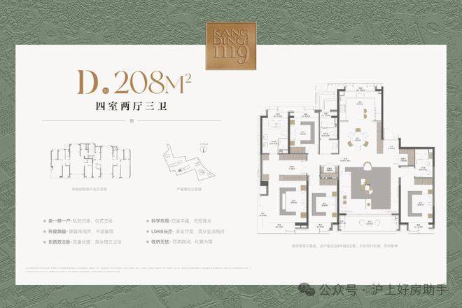 最新消息:康定壹拾玖三批次加推123-238㎡3-5房在售,均价17.18万/㎡,项目作为静安老城区稀缺产品,在细节及产品力上受到广大上海顶豪客户的喜爱,目前少量房源在售,样板间线上预约中!