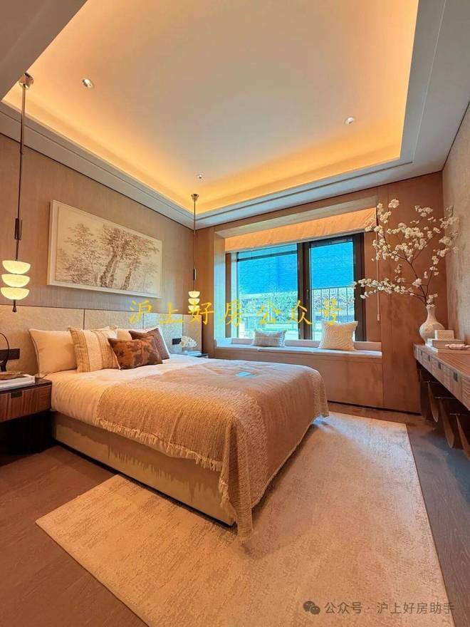 转角主卧景观:主卧依然实现了再次升级,转角飘窗将每一个清晨,推窗见绿变成日常。