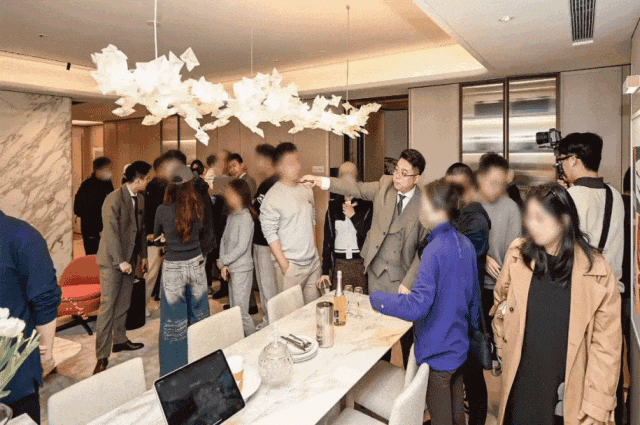 另外,因为豪宅客户对于精装美学有自己的审美,所以此次项目提供了超越行业的三大柔性定制——艺术家联名定制入户门把手、艺术家联名定制艺术门牌挂画以及墙面饰面&岛台等区域提供多款石材/岩板款式。