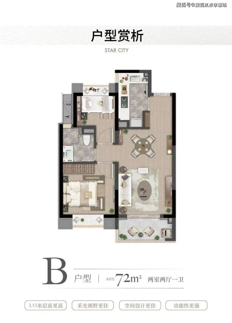三期户型较二期更丰富,目前剩余建面约72-89㎡2房、3房,满足全龄段置业需求。