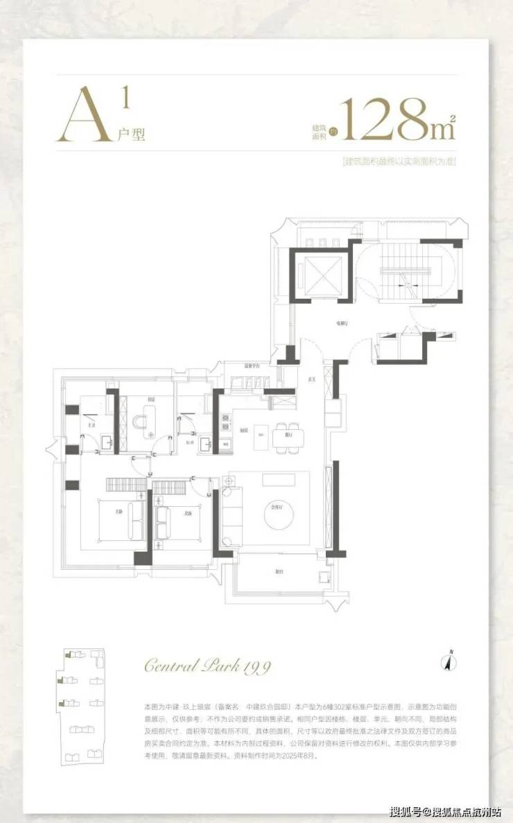 约128㎡ A户型,动静分离格局,功能区与休息区互不干扰,超大南向面宽+270°采光面,客厅开间达到了约5.4米,景观视野突出。