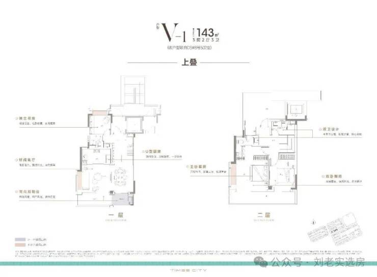 一般上叠只有一个北向露台+一个南向阳台,仅此而已。