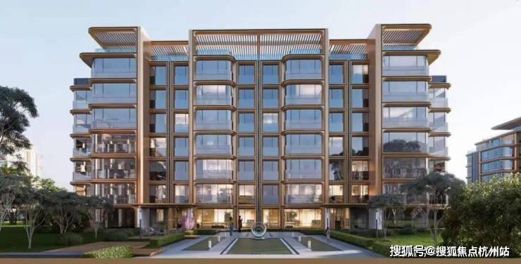 项目立面设计堪称点睛之笔:以现代简约的森系造型为形,香槟金的流动曲线为韵,厚重石材的品格为骨,珐琅的历史印记为魂。