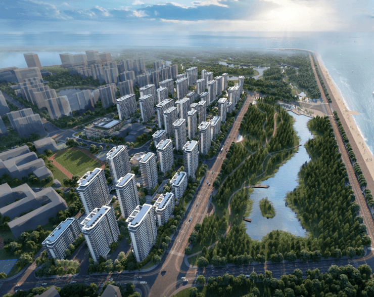 项目东邻赤风港湿地中心,南面朝向大海;周边南汇新城城市公园、国家风景区滴水湖公园,春花秋色公园,约14.3公顷莫比乌斯科学公园(在建中)等公园环伺,享生态诗意栖居