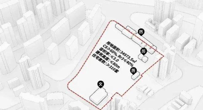 该地块用地面积34973.5㎡,容积率3.0,总建筑面积158891.1㎡,其中,地上总建筑面积107779.6㎡、计容建筑面积104920.5㎡。