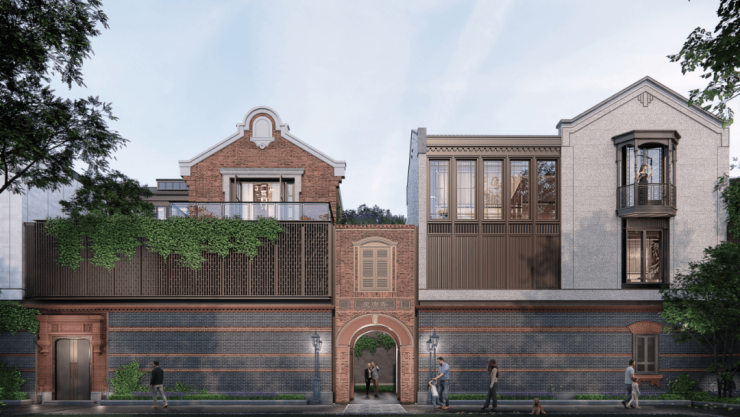 从庭园看向别墅,保留的老山墙、砖楣和门头,再加上悬挑阳台和层层露台,这种传统风貌带给人一种重见历史的感慨,又有温馨、宁静的现代舒适感。