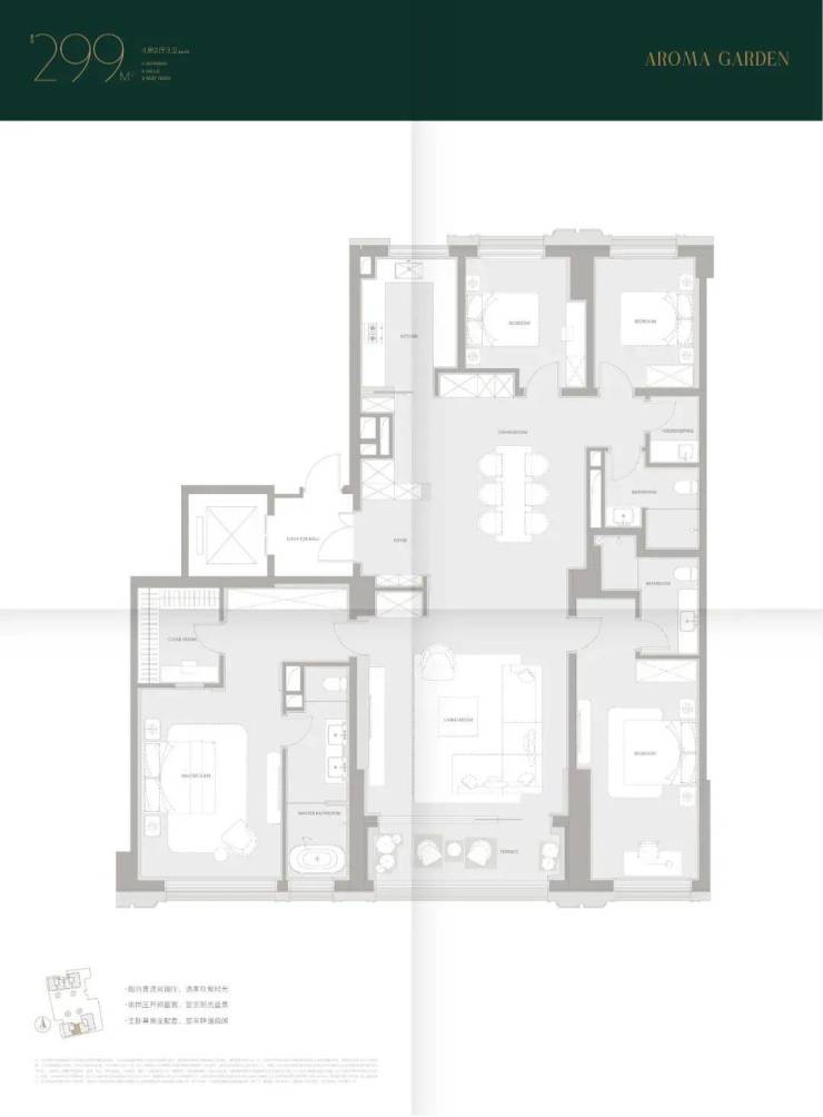 四个卧室均配备独立卫浴,隐私性与尊崇感拉满。