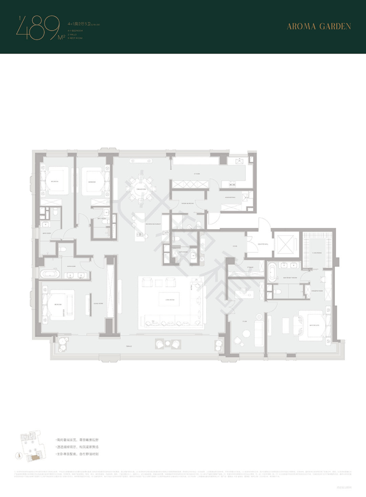 以建面约489㎡户型,实际使用面积就比同类项目多出约25㎡(相当于一间主卧的尺度)。