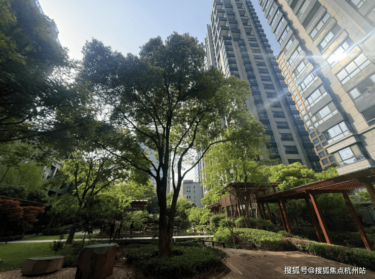 社区中间位置分有四块绿化地,分别为:映月亭台、枫林广场、曲径散步道及南北花廊。园林采用东南亚安缦风情。整体设计疏密相间、层次错落。