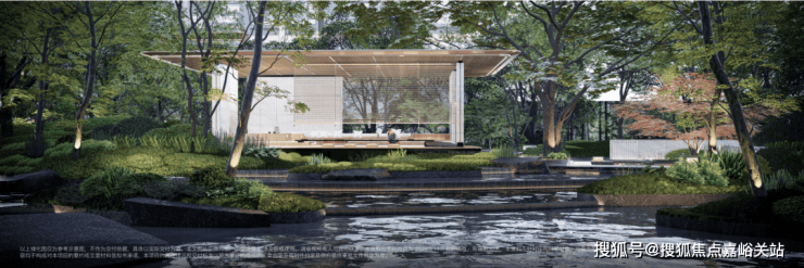 下沉式中庭花园,以⽔境、浮岛、密林,构建都市中的谧境