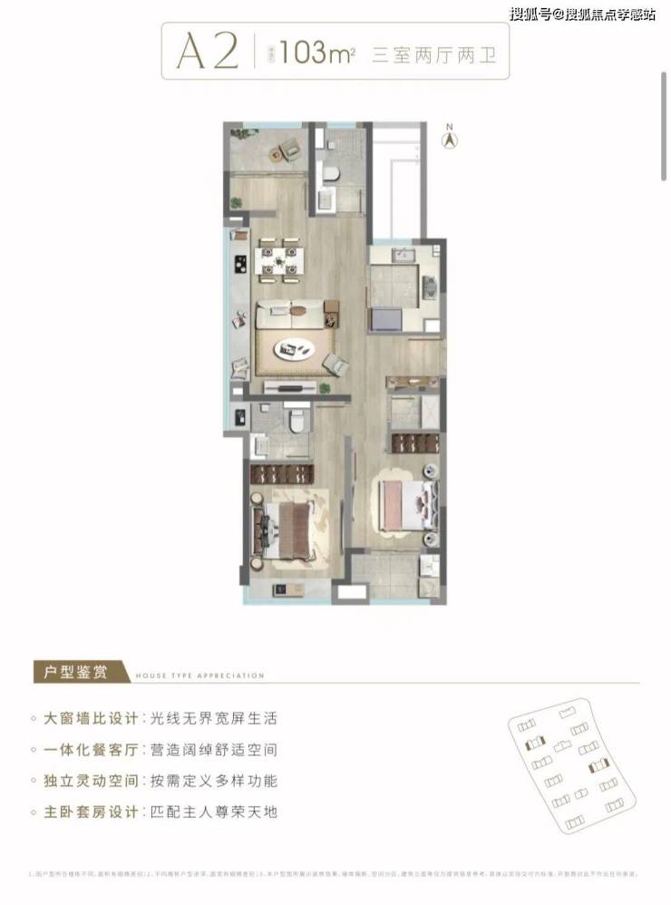 做到了3+1开间朝南+双套房设计+卫生间干湿分离,是“一步到位”的进阶改善4房!