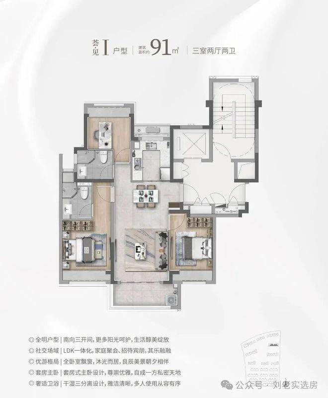①建面约91㎡3房2厅2卫:总价400万级预算错过不再有的高性价比之选!