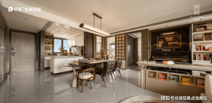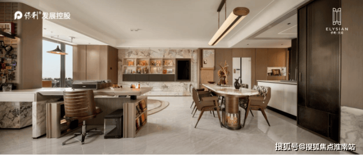 保利天奕售楼处电话☎:400-8855-420 b.海派“摩登金”搭配天然奢石,构建温润精致的公区质感;