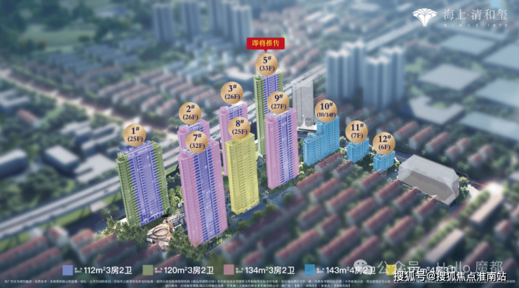 户型亮点:112㎡三房做到三卧朝南,采用“去走廊化”设计搭配U型厨房;134㎡三房动静分离,客厅面宽超4.7米且配有270°采光阳台;143㎡洋房四房南向四开间面宽约15.5米,主卧带270°飘窗,还有“类一梯一户”设计.