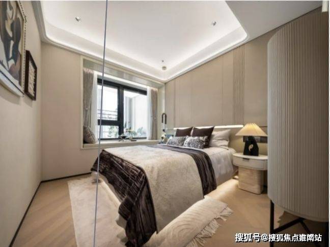 其二,大主卧带约270°飘窗,市面罕见,秒杀同级紧凑四房主卧的舒适度、采光和视野.
