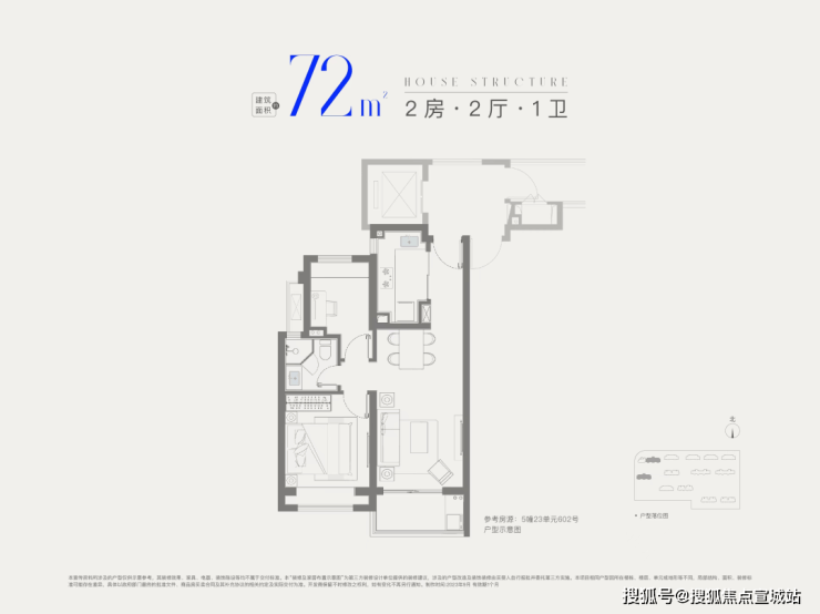建面约72㎡2房1卫,做到双开间朝南+全卧室带飘窗,总价低至2字头,是刚需上车2房的优质之选。