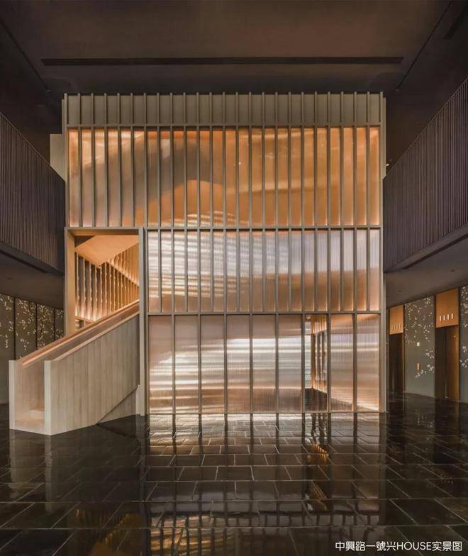 从海派入户旋转门推门而入,第一眼便能看到约13-15米的挑高大堂,艺术阶梯其作为艺术展示的重要空间,最大程度引入自然光,为空间打上朦胧、柔和的光感,融合左右两边的弧形柱体,犹如登山之“径”,随着脚步一步步叠加行进的趣味,沉浸的归家体验感随空间变化逐渐递增。