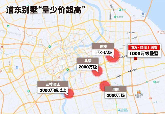 三林滨江别墅总价3000万及以上,北蔡别墅3000万级、康桥别墅2000万级、东郊别墅半亿-亿级。