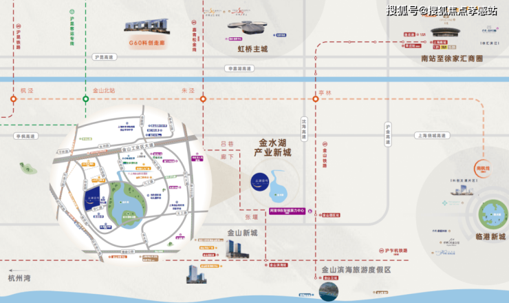 22号线金山铁路,金山园区站上车仅6站约50分钟到达上海南站,即可换乘1、3、15号线即可到达市区各个位置。以项目为起点,一小时左右畅达上海各个重要区域(G15沈海高速、G60沪昆高速、S32申嘉湖高速、G1503绕城高速等),也可乘坐公交莲卫专线直达莲花路地铁站换乘。