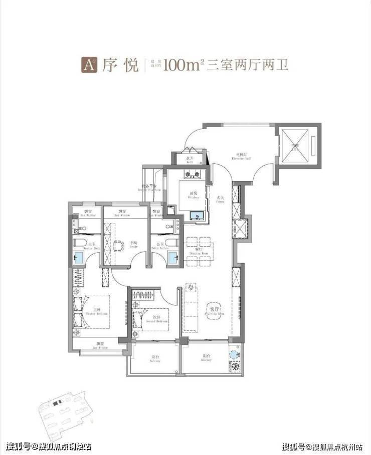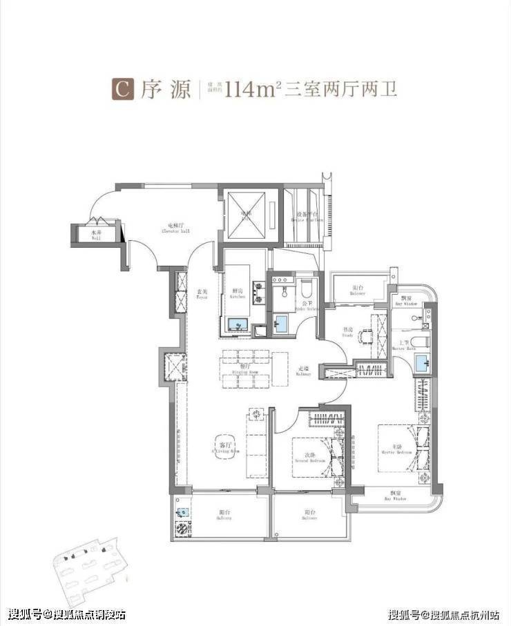 其中建面约115㎡鲲鹏阁三房户型是上海此前未见的全新王炸级产品