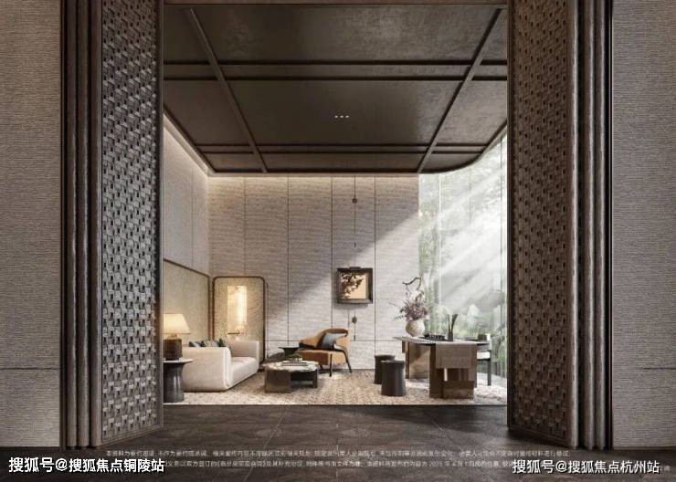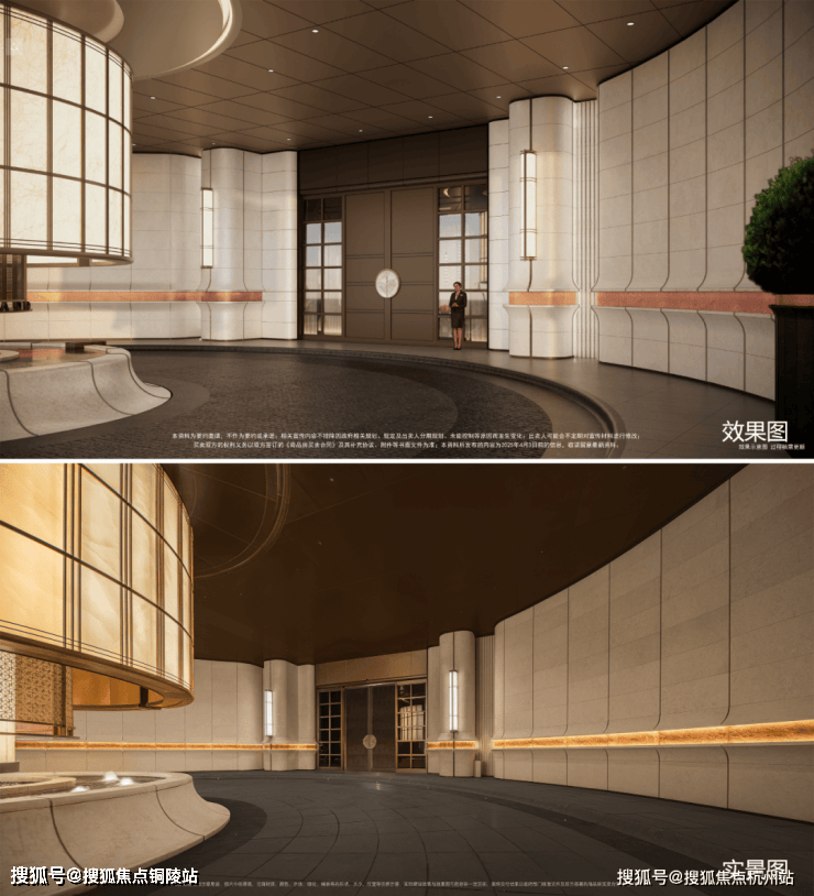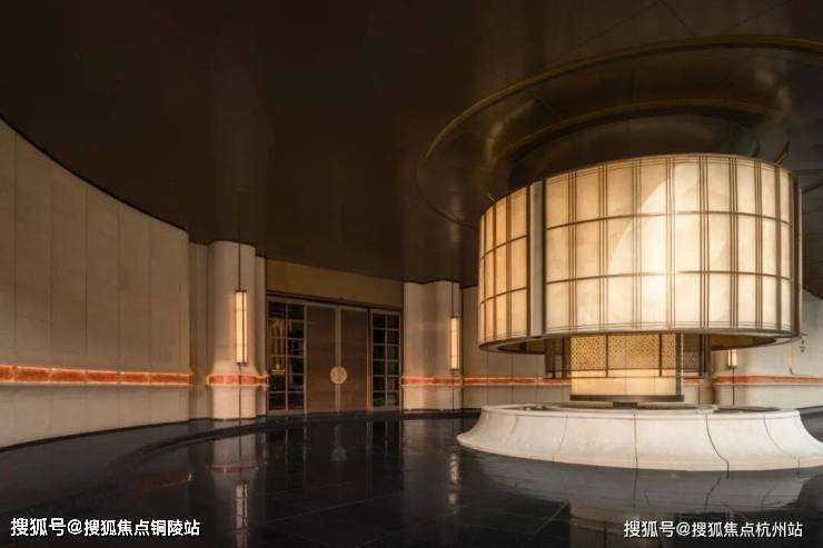 另外,项目首层通过硬朗直线呼应柔和曲线勾勒,辅以温润石材与古铜色金属线条融合,打造东西方美学共融的艺术藏品