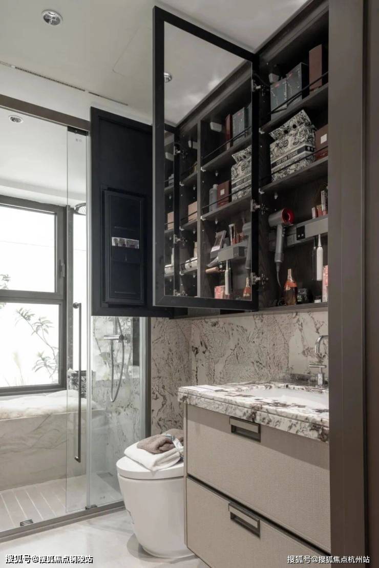 小户型最让人担心的小户型的收纳问题招商序给出了自己的解题思路,让我们看看它的收纳空间,首先是一整排的玄关收纳,玄关柜据说可以放下28双高筒靴,而且是大理石的台面石,另一侧的储物柜是一个容量较大的落地柜,足够收纳一个大行李箱,背面还贴心设置了洞洞板,可以悬挂雨伞、包包等物品,整个玄关柜是天然木皮鸡翅木包裹,非常高级,预留S墙的设计轻松收置双开门冰箱、厨房与卫生间采用了模块化的收纳系统,通过碗碟拉篮、谷物抽、不锈钢开架,贯穿式镜柜与美妆冰箱等收纳道具,将日常用品归置的仅仅有条,114主卧更是预留了超大的衣柜空间。