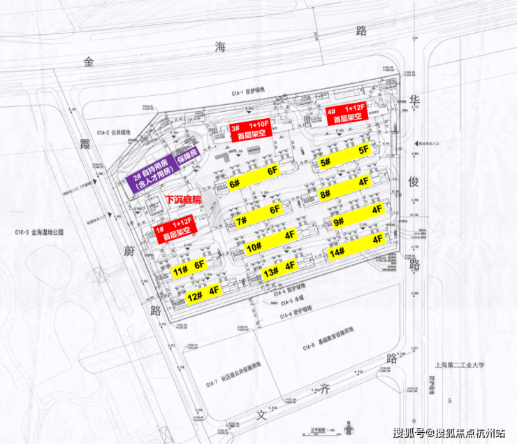 对比来看,新地块优势在于距离地铁站更近,直线距9号线顾唐路站、9号线及12号线金海路站约900米,而且地块面宽更大,户型设计可优化空间多;挑战则是北侧即为金海高架,需投入隔音降噪成本,且涵盖4000㎡商服用地。