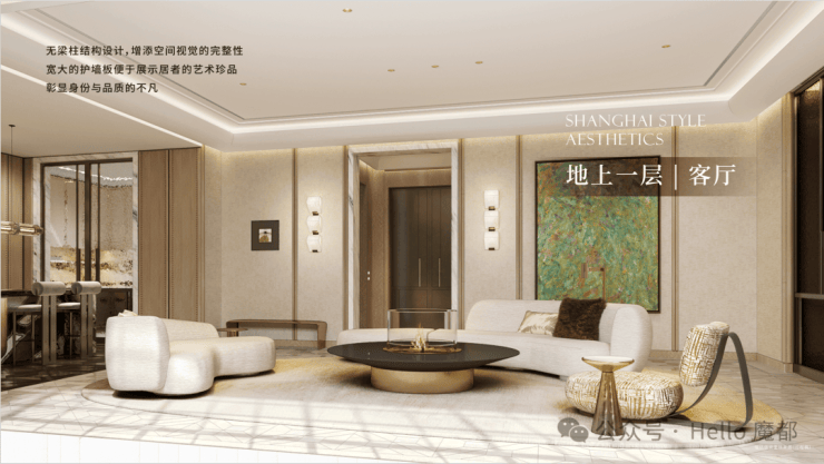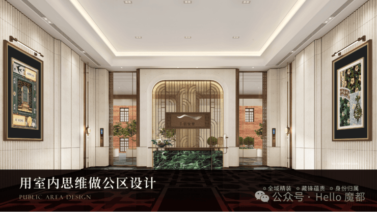 公区设计,巧妙融入百乐门印象、沪西电影院等文化元素,将过去记忆植入场景。嘉佩乐酒店式门庭、琉璃光廊式车库、海派人文哲思花园,以“深度酒店化”营造归家艺术之旅。