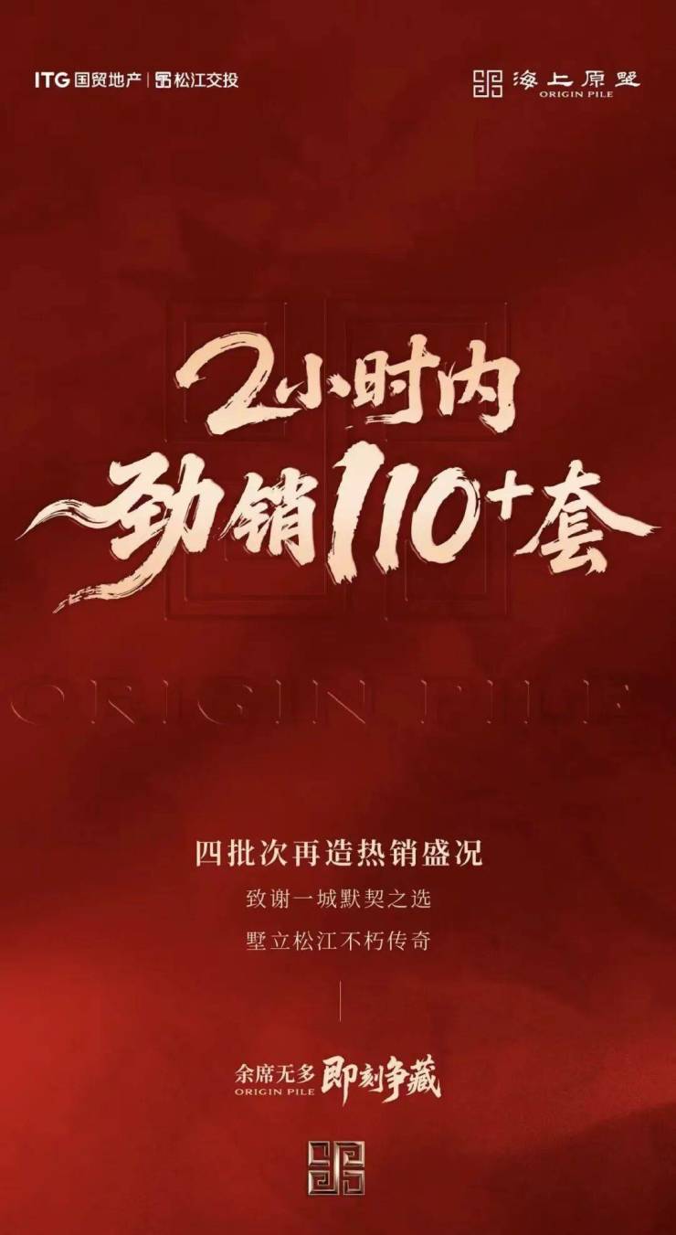 9月7日,【国贸海上原墅】三批次盛大开盘,2个小时销售总金额超14亿,再次以璀璨高光领耀松江的独立行情。