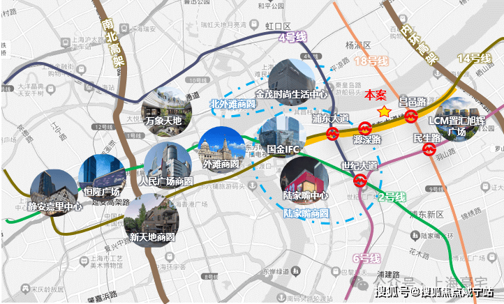 大型商业有陆家嘴金融城、国金中心、老佛爷百货、世纪汇、LCM置汇旭辉广场等高端商业就在周边约3km生活圈内;对岸东外滩渔人码头、北外滩来福士也可以通过隧道、杨浦大桥等快速路直达!