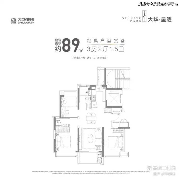 【大华星曜】售楼处预约热线:400-8855-420📲建面约89㎡户型,三开间朝南,并且全卧室带飘窗,室内的采光、视野以及空间延展性都非常出色。值得一提的是,室内没有任何的走廊和拐角,在加上一梯两户带来的高得房率。所以虽然是约89㎡的紧凑型3房,但这个户型还是有空间做了一个1.5卫的设计,保证了主人的私密空间,也避免了早高峰用厕的尴尬。