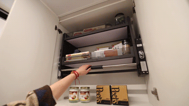 这里还藏着7大智慧收纳空间,橱柜采用浅灰高光PET平贴面板,更加方便清洁。柜内设置了升降拉篮+多功能调味拉篮+谷物抽+碗碟拉篮,更是充分利用了厨房飘窗打造了操作台面及抽屉,将操作空间及收纳空间进一步放大。灶台旁同样打造了开放式网格收纳空间。