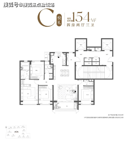 另外,主卧小家化的套房设计、270度的南向瞰景阳台、四开间朝南的开阔尺度。
